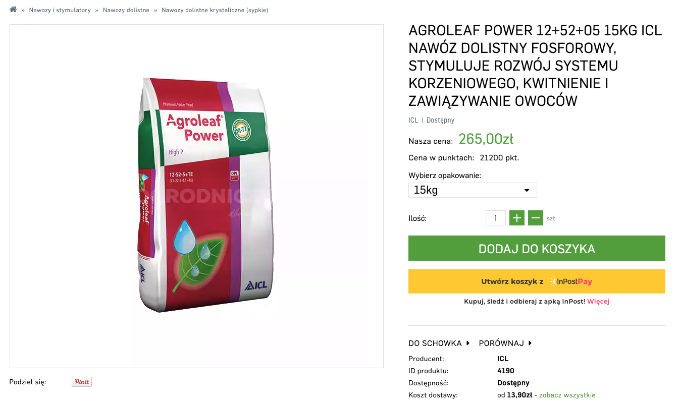 I jeszcze inny przykład, w którym możemy np. wybrać wielkość opakowania nawozu.